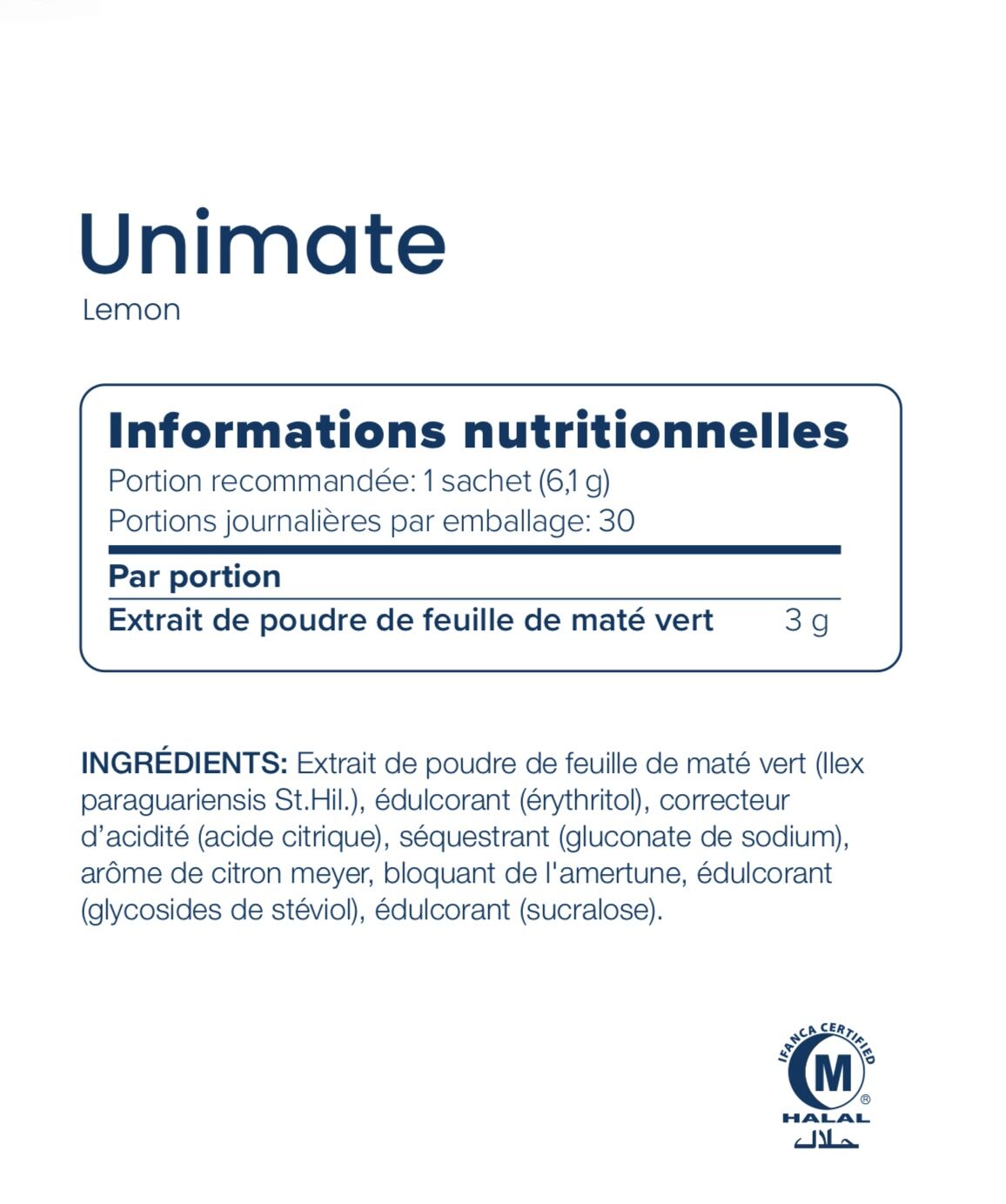 • Unimate: 30 sachets individuels de 3g
